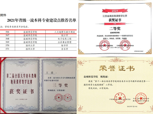 聚焦教学能力提升,质量工程建设跨越发展。以课程改革为抓手,以教学质量提升为目标,教师教学能力显著提升。“课程思政”示范课程立项数居全校第一,2门教材获批省级重点建设教材;获全国高校测绘类专业青年教师讲课竞赛二等奖1项,全国大学青年教师地质课程教学比赛三等奖1项,江苏高校微课教学竞赛二等奖1项,省师范院校智慧教学比赛三等奖1项;获批省教育科学“十四五”规划课题1项,盐城市教育科学“十四五”规划课题3项;获省优秀毕业论文1篇,发表教学论文近40篇;获得校教学成果奖一等奖2项。
