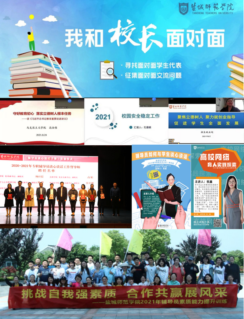 出台《关于进一步加强辅导员班主任与学生谈心工作的意见》,编印《谈心谈话工作手册》,制定谈心谈话督导工作办法和“十要规范”,汇编典型案例百余篇,力求做到谈话有重点,谈心见成效。学校辅导员谈心谈话工作“八必谈”做法被写入省教育厅《关于加强大学生心理健康教育管理工作的通知》苏教学函(2021)13号文件;《用谈心谈话坚守思政工作初心使命——盐城师范学院辅导员谈心谈话工作机制创新》获评2021年度江苏省高校学生管理创新奖一等奖。
