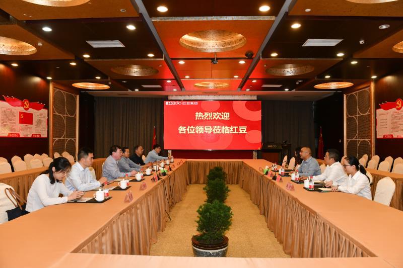 庞波一行来到红豆集团,与无锡校友会会长、外财95届校友、江苏红豆杉医药科技有限公司总经理徐信保,江苏红豆缘总经理安晓东及红豆集团人力资源部相关人员进行座谈交流。
