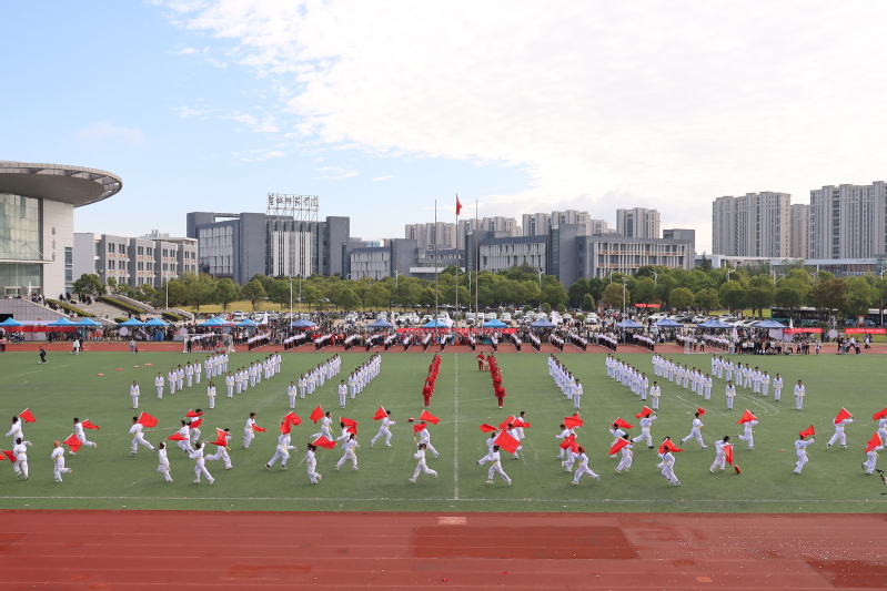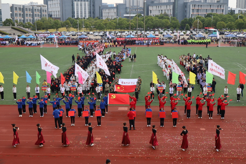 云碧景风来, 三秋桂子香。10月27日上午,我校第23届田径运动会在新长校区体育场开幕。学校党委书记戴斌荣出席开幕式并宣布运动会开幕,党委副书记、校长张宏如致开幕词,党委常委、副校长毕凤珊主持开幕式。校领导于建江、庞波、张桂华、汤克明、韩雅丽、徐华出席开幕式。