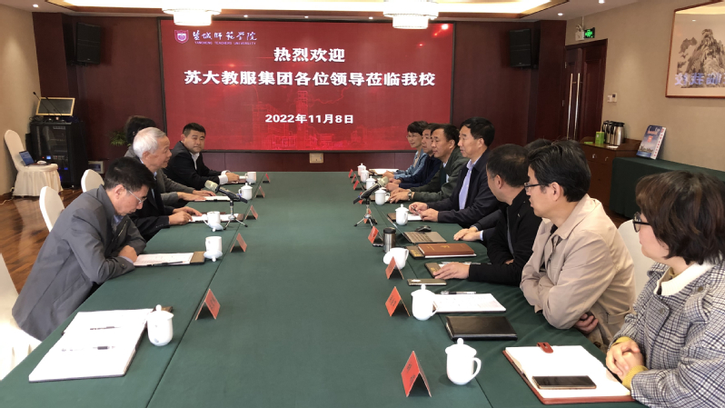 韦曙和简要介绍苏大教服集团的情况,同时感谢盐城师范学院为集团物业服务提供平台和机会。宾主双方还就高校后勤服务外包工作进行了深入的探讨和交流。