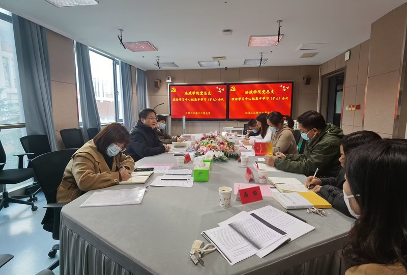 在法政学院党总支理论学习中心组集体学习会上,冯春芳领学党的二十大报告中关于“坚持全面依法治国,推进法治中国建设”的内容,并结合《党的二十大报告学习辅导百问》重点阐释了“法治中国”的内涵要义。会议集中观看了视频《习近平法治思想推动法治中国建设开创新局面》。中心组成员围绕“法治中国”主题,联系自身学习和工作实际进行重点发言、畅谈学习体会。