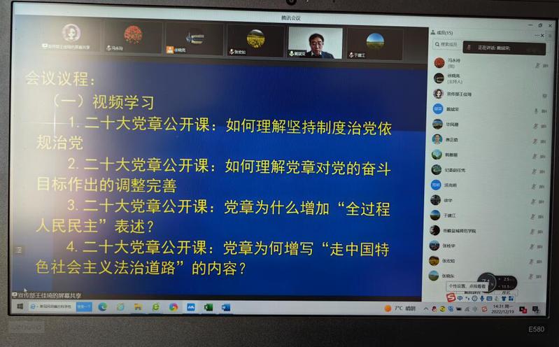 12月19日下午,学校党委书记戴斌荣主持召开党委理论学习中心组2022年第十三次集体学习会,深入学习贯彻党的二十大精神,围绕最新修订的《中国共产党章程》开展专题学习交流。
