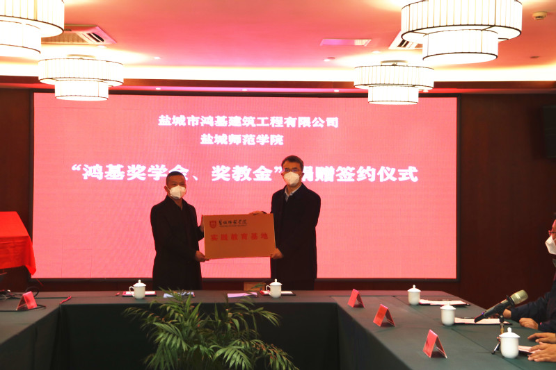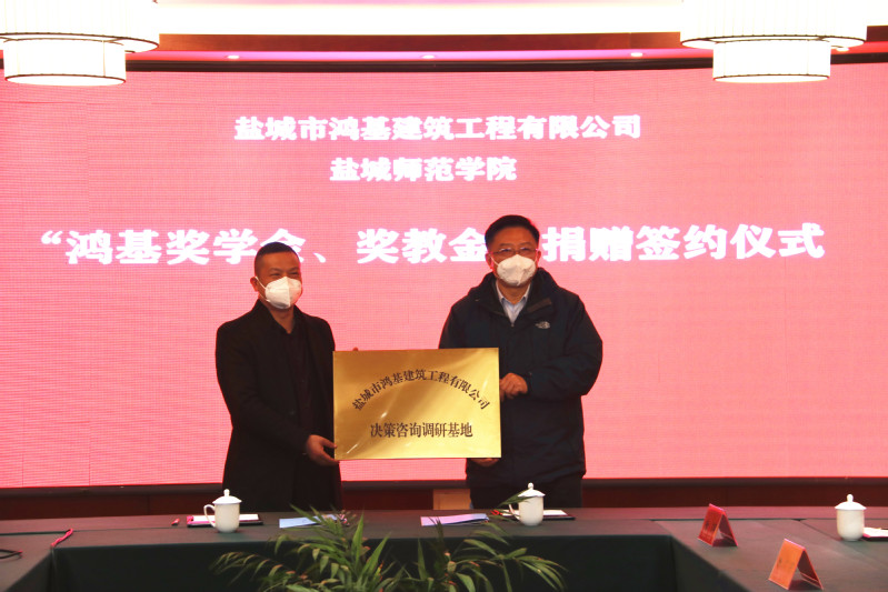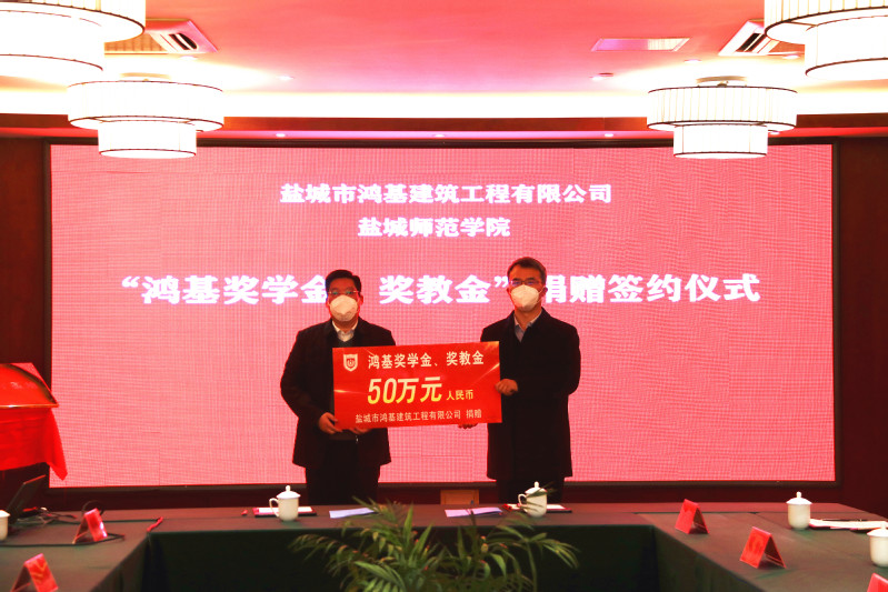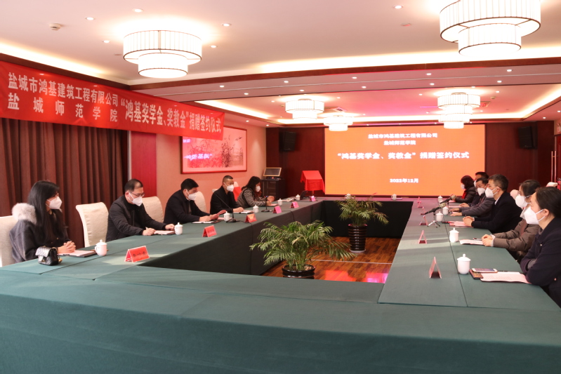 12月21日下午,“鸿基奖学金、奖教金”签约仪式在我校举行。学校党委副书记于建江,盐城市鸿基建筑工程有限公司董事长肖广军出席签约仪式。学校发改办主任黄新如主持仪式。