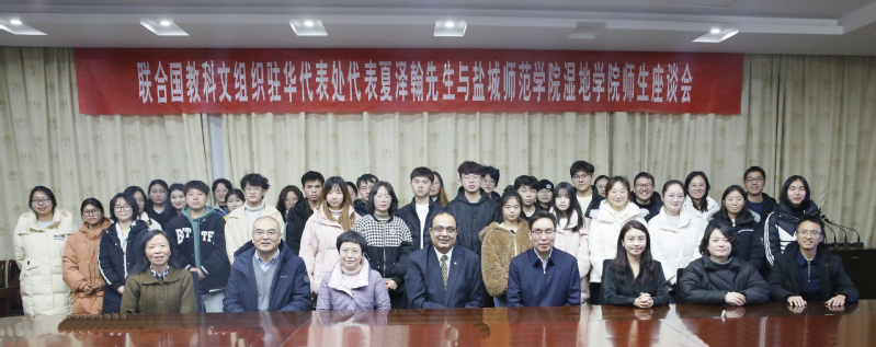 2月16日上午,联合国教科文组织驻华代表处代表夏泽翰教授一行来我校交流座谈。学校党委常委、副校长毕凤珊出席相关活动。盐城市政协副主席、我校湿地学院院长唐伯平主持座谈会。