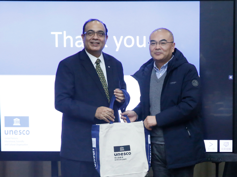 夏泽翰教授详细了解我校和湿地学院的办学历史、办学理念与办学情况。他对学校在支撑和服务地方发展方面的贡献给予高度赞扬,对我校湿地学院在支撑地方政府申报世界自然遗产地方面所做的贡献给予充分肯定,高度赞扬湿地学院注重实践教学、服务社会的做法。他详细介绍了联合国教科文组织北京办事处的工作内容与特色,并欢迎师生前去交流。