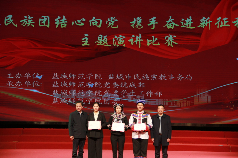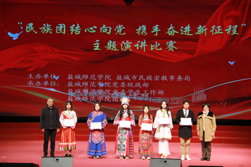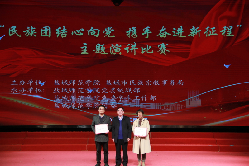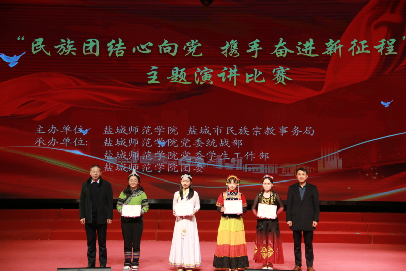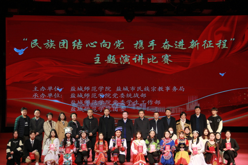 为深入学习宣传习近平总书记关于加强和改进民族工作的重要思想,增进大学生对各民族共同缔造伟大祖国历史和各民族优秀文化的了解和认识,营造和谐融洽、全面发展的校园民族文化氛围。3月1日下午,“民族团结心向党,携手奋进新征程”演讲比赛在学校新长校区大学生活动中心举行,本次演讲比赛由我校和盐城市民族宗教事务局联合举办,校党委统战部、党委学生工作部及团委共同承办。