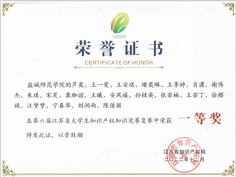 3月17日,第六届江苏省大学生知识产权知识竞赛决赛在南京工业大学江浦校区举行。经过激烈角逐,我校在参加决赛的10支高校代表队中脱颖而出,最终获得一等奖的好成绩。这是我校在本项赛事上第三次获得一等奖第一名。