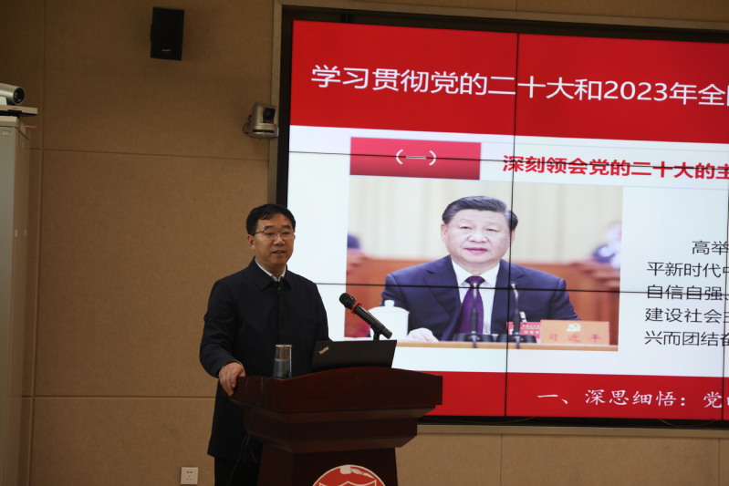 3月31日下午,学校党委书记戴斌荣走进思政课堂,以“学习贯彻党的二十大和2023年全国两会精神 立志做新时代好青年”为主题,为学生上了一堂精彩生动的思政第一课。