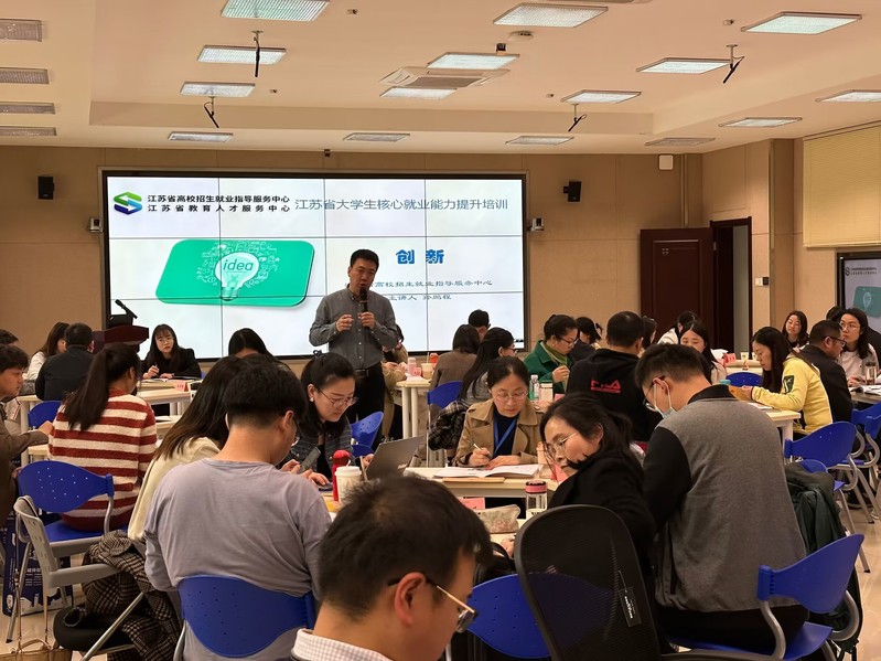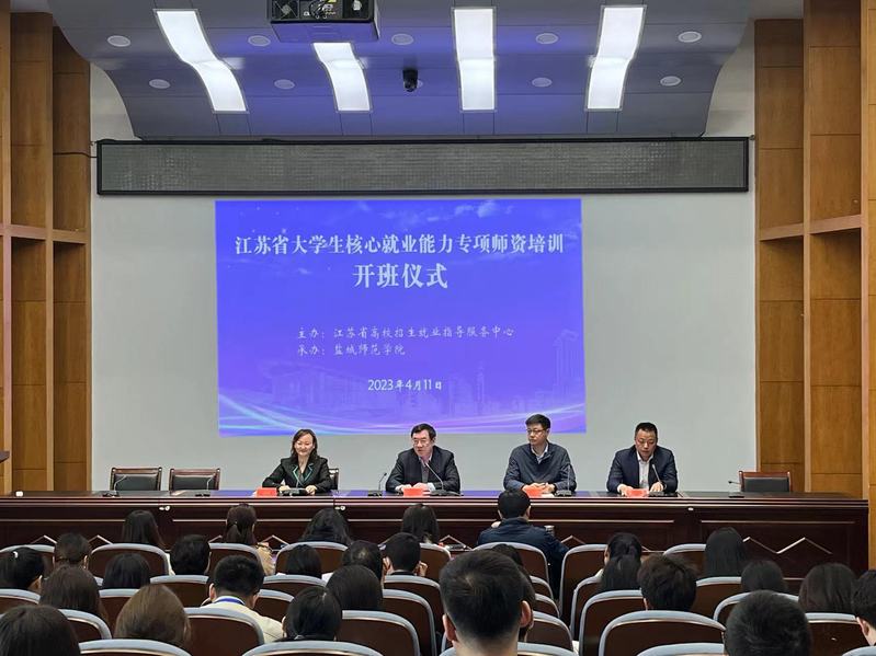 4月11-13日,江苏省大学生核心就业能力专项师资培训班在我校开班。省高校招生就业服务指导中心副主任黄炜,学校党委常委、副校长庞波出席开班仪式。来自全省62所高校的300余名就业指导教师参加培训,开班仪式由招生就业处处长刘海燕主持。