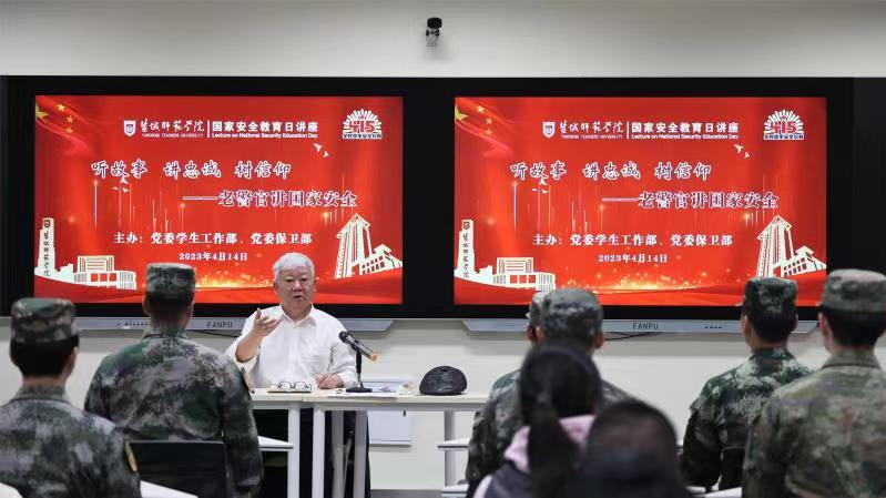 在第八个全民国家安全教育日来临之际,4月14日上午,我校在新长校区公共教学楼智慧教室A105举办了国家安全教育专题讲座。讲座由我校79届毕业生,一级警督,国家安全部某单位处长老警官主讲。党委学生工作部、学生工作处处长李健明主持讲座。党委学工部、保卫部负责同志,80余名学生现场听取了讲座,500余名同学通过线上同步学习。