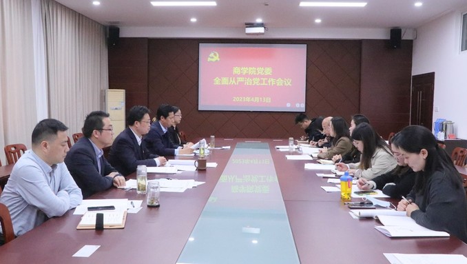 为深入学习贯彻习近平新时代中国特色社会主义思想和党的二十大精神,切实推进全面从严治党,4月13日下午,商学院在逸夫楼大会议室召开 2023 年全面从严治党工作会议。商学院党委书记李明主持会议。