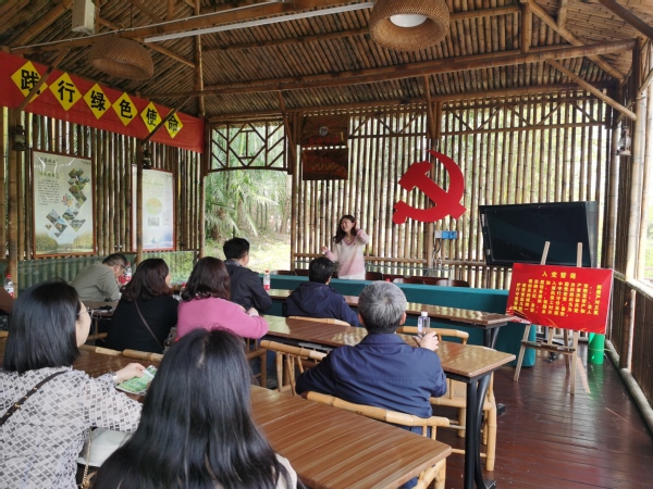 在知青林的红色大讲堂,法政学院党总支书记冯春芳带领全体党员重温入党誓词,组织大家围绕学习心得体会展开交流讨论。冯春芳强调,学习贯彻习近平新时代中国特色社会主义思想是当前首要的政治任务,要牢牢把握“学思想、强党性、重实践、建新功”总体要求,发挥专业优势,强化理论学习,深入调查研究,切实把所悟、所感转化成所为,为培养高素质法治人才、推动法治社会建设贡献力量。