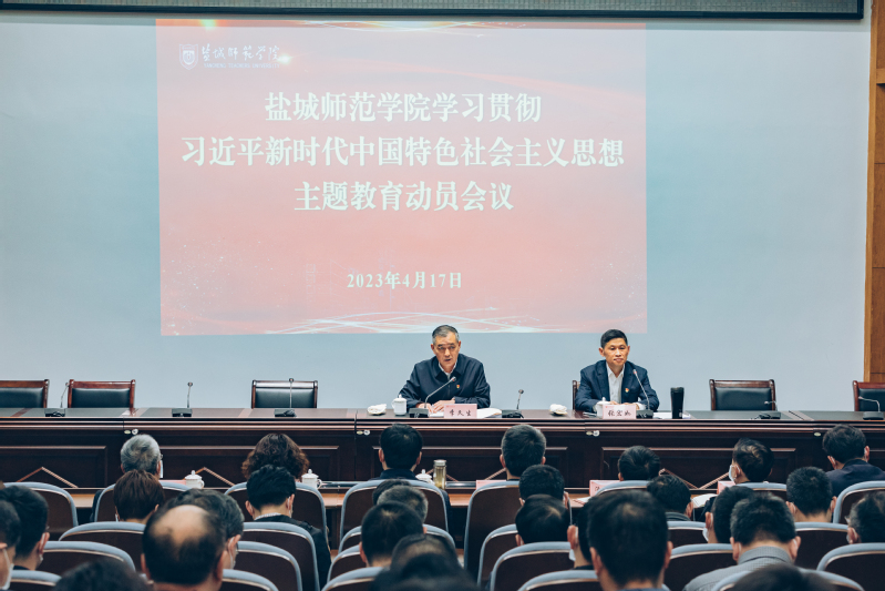 4月17日下午,我校在新长校区厚德楼二楼西会议室召开学习贯彻习近平新时代中国特色社会主义思想主题教育动员会。受学校党委书记戴斌荣委托,学校党委副书记、校长张宏如主持会议并作动员讲话。省委主题教育第二十四巡回指导组到会指导,指导组组长、南京师范大学原党委常委、副校长(正校级)李久生作指导讲话。全体在盐校领导、校级老领导出席动员会。