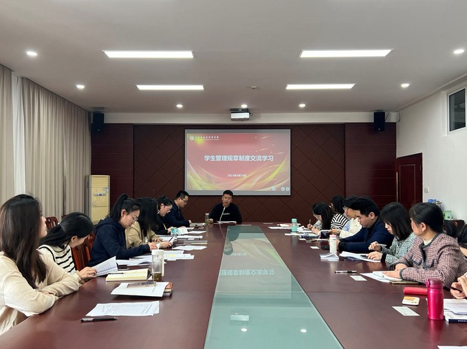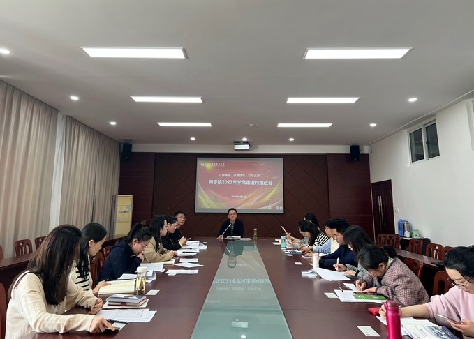 为推进学风建设走深走实,4月18日下午,商学院在逸夫楼三楼会议室召开了2023年学风建设月活动推进会。学院党委副书记秦圣阳、全体专职辅导员以及兼职班主任参加会议。会议由秦圣阳主持。