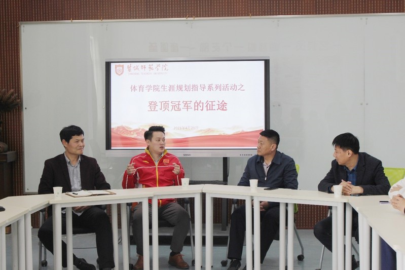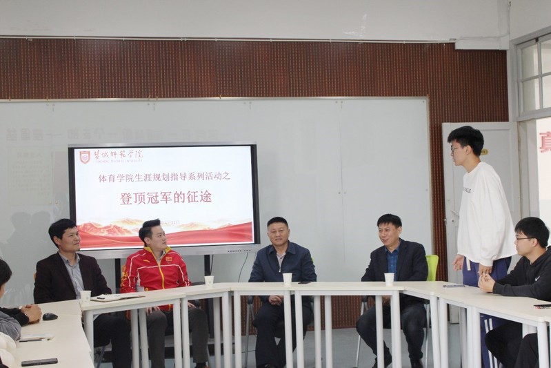 座谈会伊始,张兵对陆春龙的到来表示热烈欢迎,并简要介绍了学院的基本情况。陆春龙表示,非常高兴能够与盐城师范学院体育学院的同学们见面,并向学生分享了自己的冠军之路,传授了“冠军秘诀”,以亲身经历激励我院师生发扬拼搏、进取、永不言弃的体育精神。