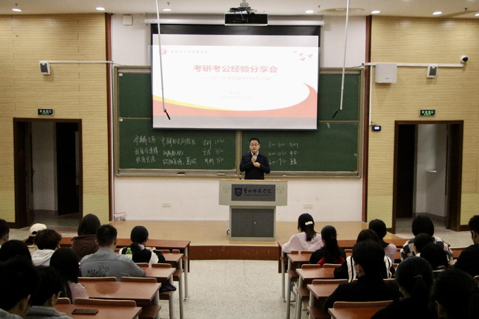 为提高毕业生就业质量、营造浓厚学习氛围,4月23日下午,商学院在生化楼117教室举办考研考公经验分享会。商学院党委副书记秦圣阳、19级优秀学生代表及部分非毕业班学生参加分享会。