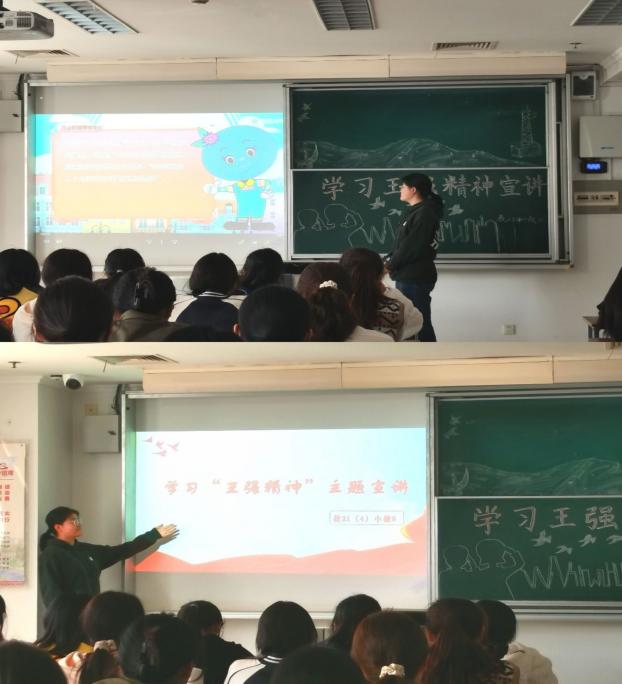 以主题教育为“立足点”,守思想阵地,固信仰之基。“王强创建班”学生通过班会学习、主题宣讲等形式深入学习王强老师的感人事迹,深刻理解王强精神的丰富内涵。“王强创建班”学生不断强化理论学习,以高度的政治责任感和历史使命感筑牢思想根基。