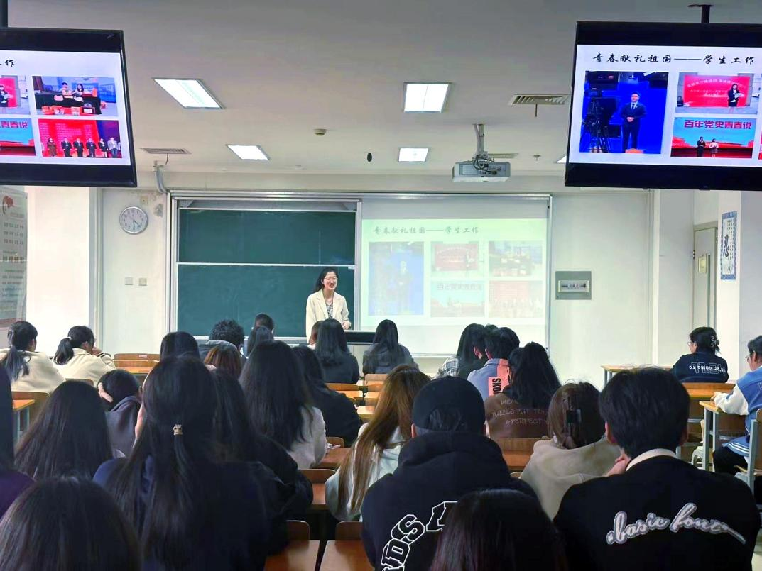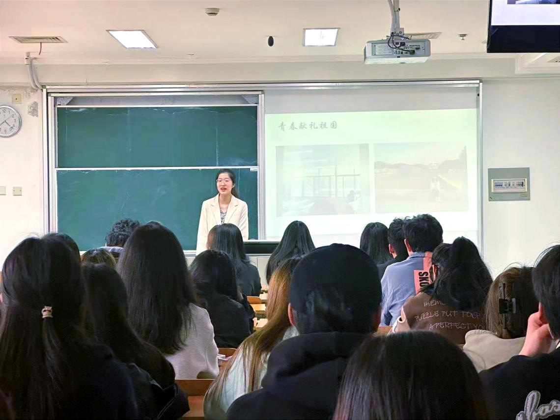 陈卓一就“什么是信仰”与同学们一起探讨,并分享了王强老师的先进事迹,带领同学们深入理解信仰的意义,鼓励同学们要坚定信仰,勇敢面对困境。随后,陈卓一讲述了自己在大学期间参加活动、比赛以及学生工作的故事,鼓励同学们积极投身学生工作、参加各种有意义的活动,如“互联网+”“挑战杯”等,不断提高自己的综合能力,丰富个人经历,为今后的发展打下坚实的基础。最后,她用“打开视野”四个字作为总结,勉励同学们在青春年华里体验更多不一样的事物,做更好的自己,将青春献给祖国,不负青春,不负韶华!