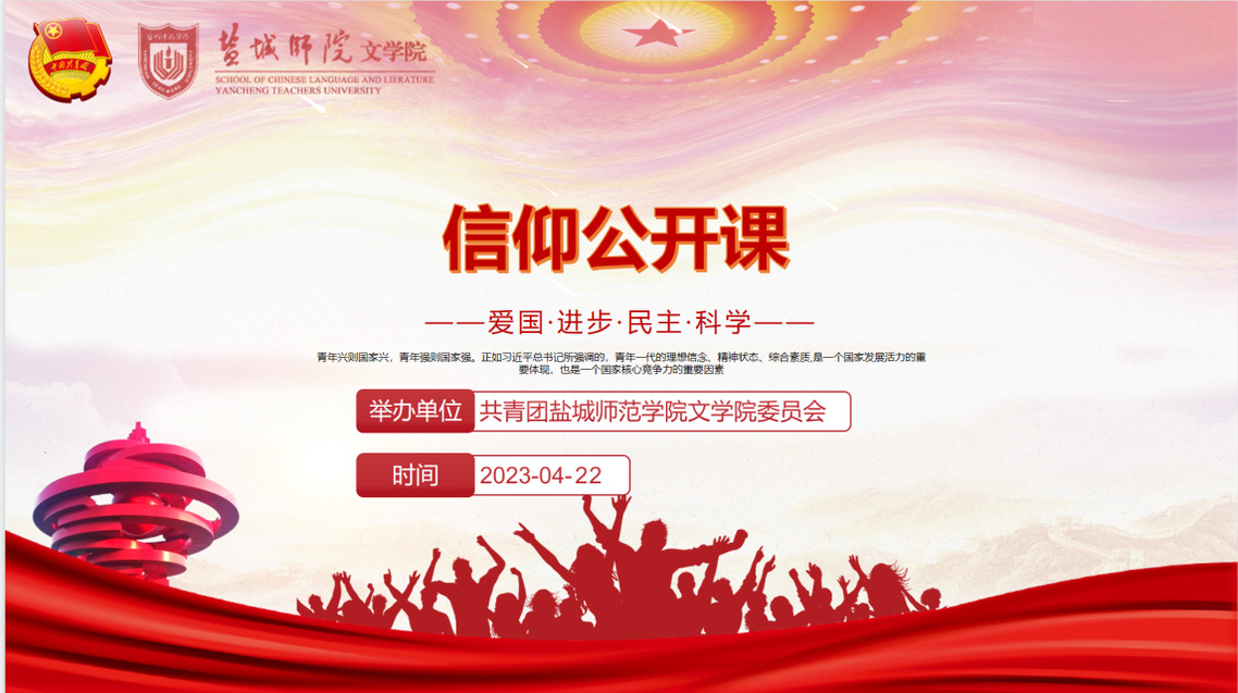为深入学习贯彻党的二十大精神,引导广大青年学生树立正确的人生目标,更好地规划未来,实现自己的价值,文学院于4月22日下午在通榆校区主楼A612教室开展信仰公开课。此次活动邀请了优秀毕业生代表199班陈卓一同学分享个人经验。