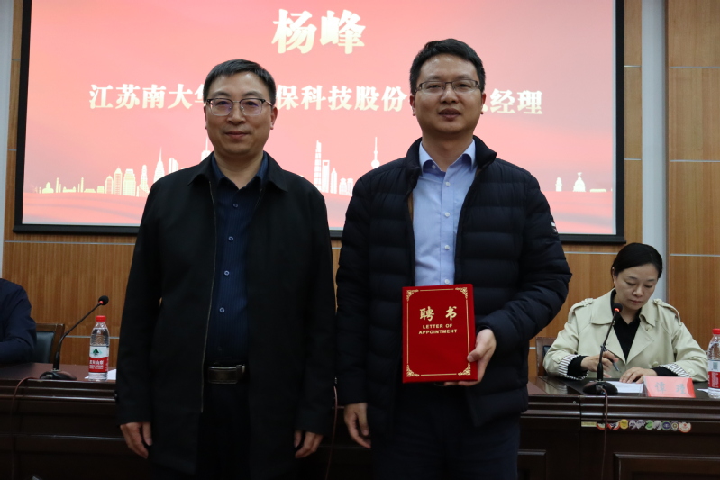 费正皓对活动进行指导,他肯定了本次活动的重要意义并寄予厚望,希望老师和同学们能有“风物长宜放眼量”的度量,有十年甚至几十年磨一剑的定力与魄力,在学习和科研的道路上努力做到行知合一、以知促行、以行求知。仪式结束后,绿政生态环境咨询江苏有限公司总经理李娄刚作了题为《环保行业形势及就业问题分析》的报告。学院分别为杨峰同志颁发“产业教授”聘书,为李娄刚、赵栋梁、张立富等4人颁发“兼职教授”聘书。