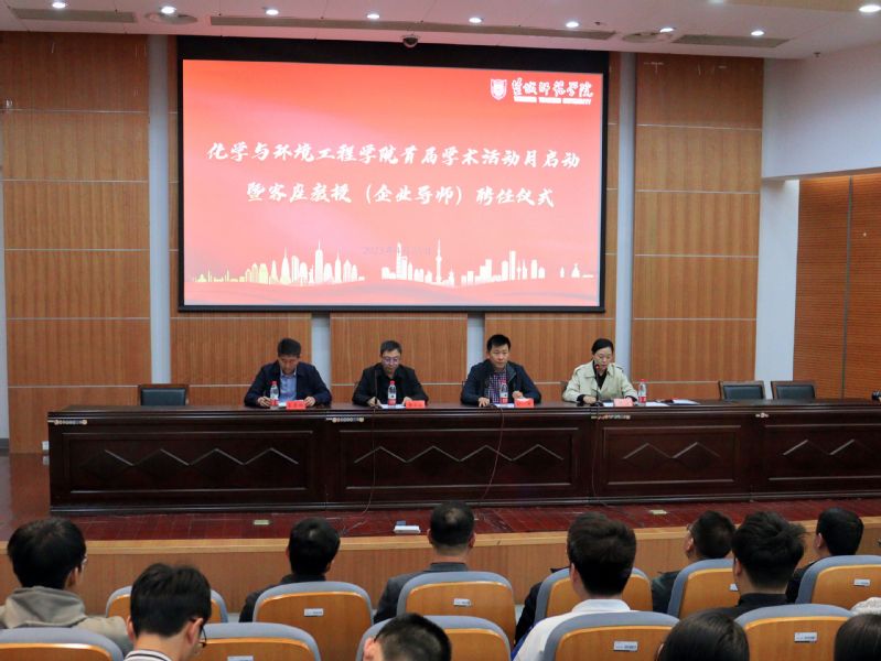 为进一步加强学院学风建设, 拓宽学术视野,培养学术能力,营造积极向上的校园文化环境和浓厚的学术氛围,4月26日下午,化学与环境工程学院首届学术活动月启动暨客座教授(企业导师)聘任仪式在新长校区学术报告厅举行。校党委常委、统战部部长、科技与产业处处长费正皓,化学与环境工程学院党委书记刘洋、院长王彦卿出席本次活动。仪式由化学与环境工程学院党委副书记谭瑾主持。