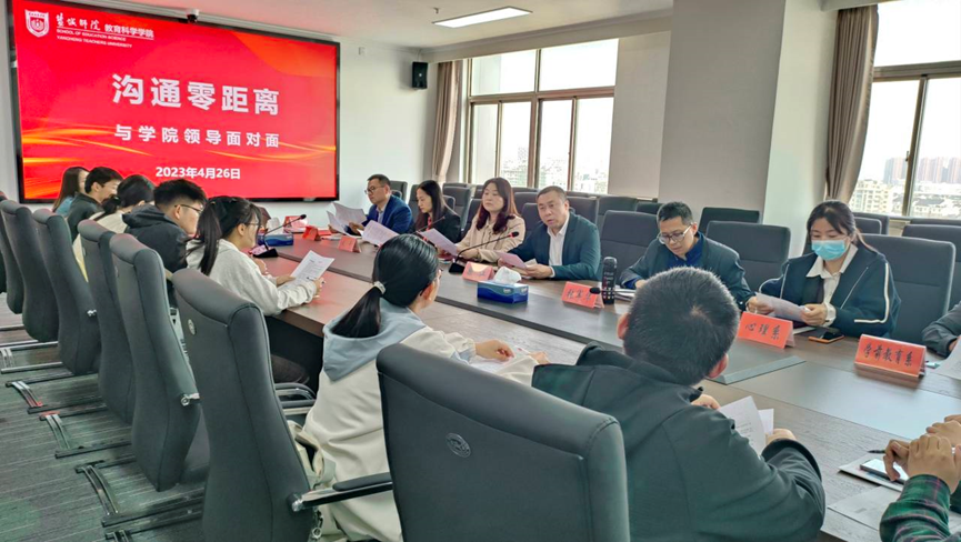 为深入学习贯彻习近平总书记关于调查研究的重要论述,围绕学校“十四五”规划、第四次党代会精神、“1+8”文件等重要指示,以问题为导向,4月26日下午,教育科学学院在通榆校区教学主楼1108会议室举办“沟通零距离——与学院领导面对面”活动。学院党委书记杨日晨、院长柴江、副院长伏干、副院长张军华、各系科、教学办、学工办参加了座谈会,会议由党委书记杨日晨主持。