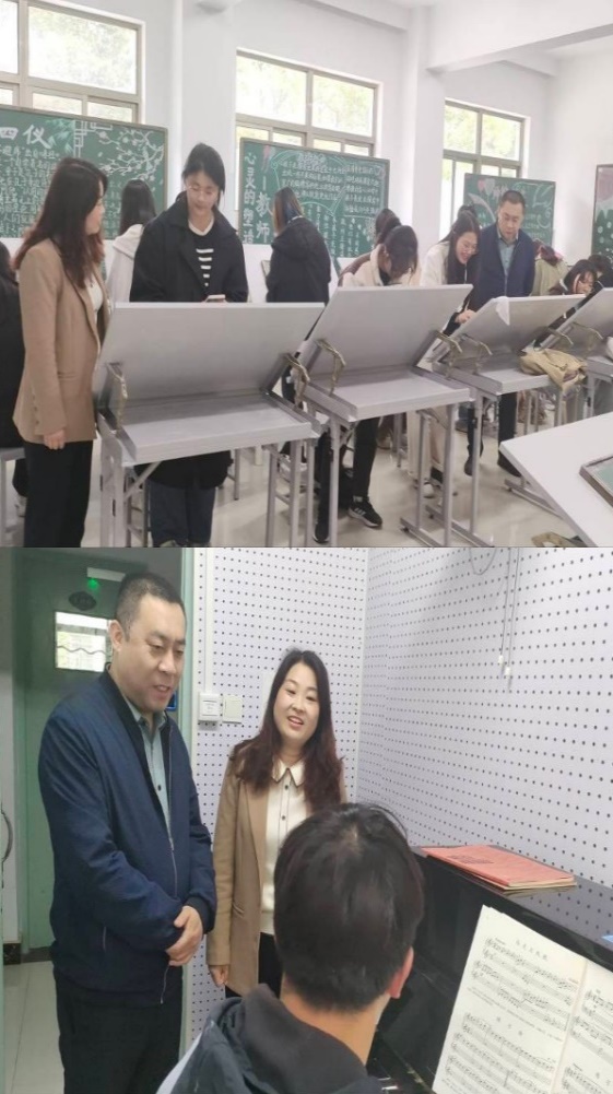 学院领导还深入学生学习、生活一线展开调研,走访了学生宿舍、教室、琴房、舞蹈房和实训室,真实了解学生在学习、生活中的具体情况,并现场联系解决了部分钢琴音不准、考研教室座位安排、粉笔字练习的时间安排等问题。