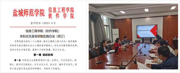 学院以《信息工程学院(软件学院)本科生生涯导师制实施办法(修订)》为制度保障,实施“一班一导师团队、一生多导师、一人一档案”的生涯教育工作举措。学院专任教师、辅导员,企业专家、杰出校友等全员协同,按照专业对口、均衡全面的原则构建导师团队,开展生涯教育导师培训,打造专业化指导团队,为学生生涯指导提供保障。