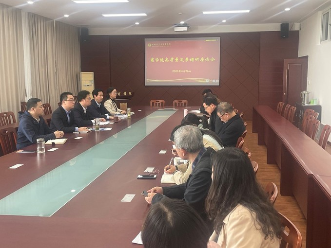 为进一步推动学习贯彻习近平新时代中国特色社会主义思想主题教育走深走实,引领学院事业高质量发展,4月26日,商学院在大会议室召开主题教育调研教师座谈会。学院党委书记李明,党委副书记、院长殷凤春,党委副书记秦圣阳,副院长钱英、王力,部分教师代表参加会议。会议由殷凤春主持。