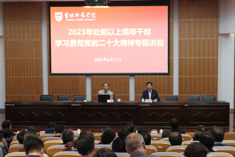 5月12日上午,我校在新长校区图书馆学术报告厅召开主题教育读书班专题辅导报告会暨党委理论学习中心组(扩大)学习会。会议邀请江苏省政府研究室原副主任沈和作专题报告,这也是我校处级领导干部学习贯彻党的二十大精神集中轮训的第七场专家报告会。学校党委副书记于建江主持报告会,全体在盐校领导出席报告会,全校处级领导干部及相关部门参会。