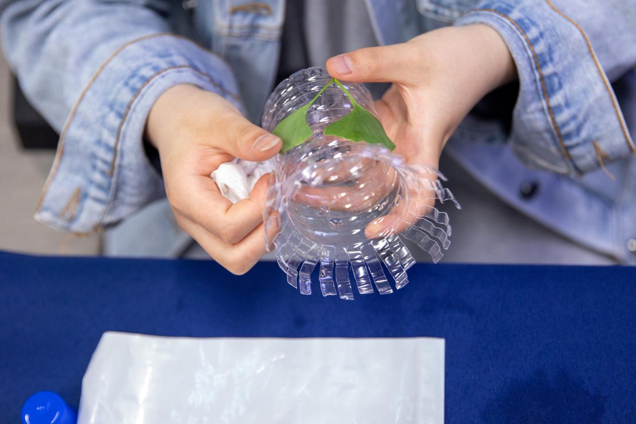 在“变废为宝”DIY手工环节,环境专业的学生向参与活动的同学们分发了制作材料,并向大家介绍了每样材料的用途和制作步骤。现场观众跟着小老师一起学习制作,一个个废弃塑料瓶、易拉罐在同学们的巧手制作下变成实用小花瓶。此次动手体验教会同学们合理利用资源,从身边小事做起,实现生活垃圾减量化、资源化,共同创建美丽家园。