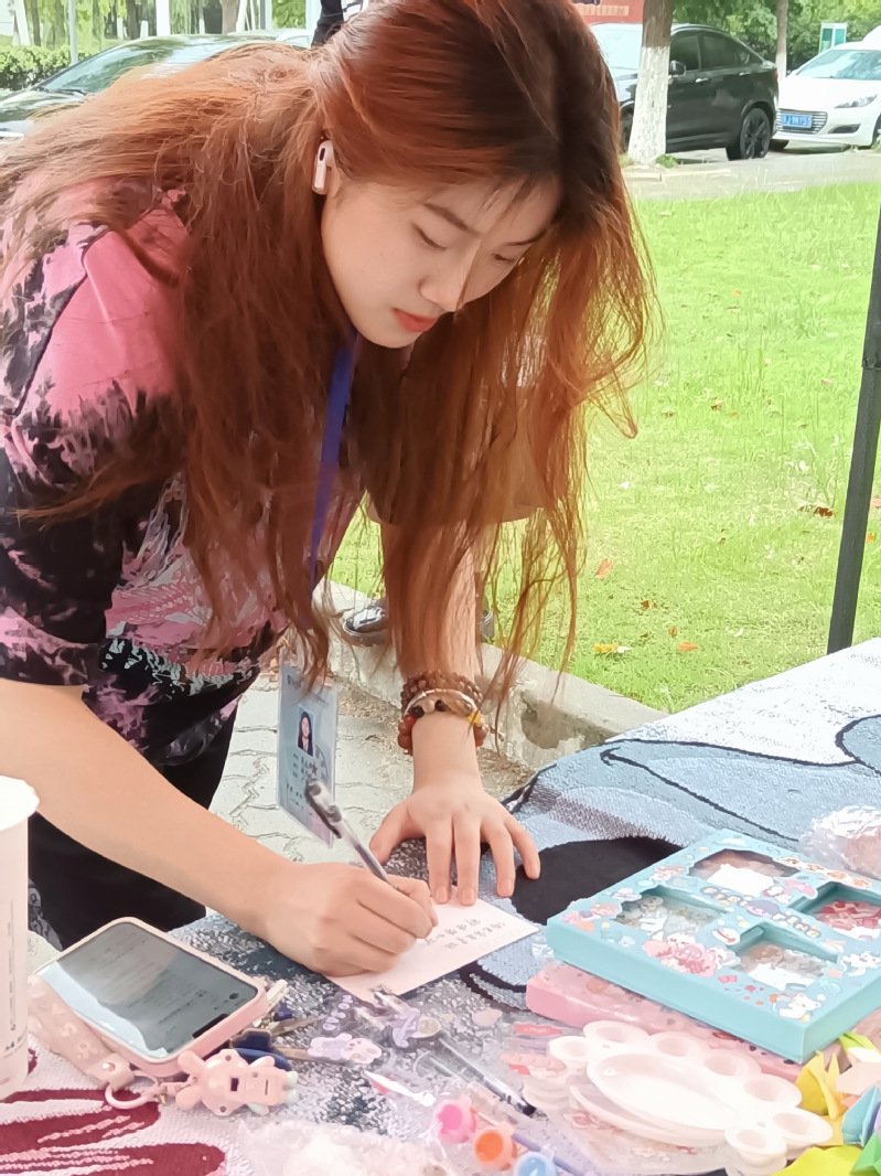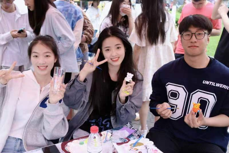 本次活动运用表达性艺术心理疗法和音乐疗法等方式开展,设有“律动青春 户外K歌”“你的杯子你定义”“心传递 信遥寄”“你是娃娃艺术家”四个子活动,吸引了全校百余名学生参加。伴随着音乐学院22级学生郭鑫泽、21级学生陈修言带来的《我怀念的》《想自由》等歌曲,同学们享受着自己画娃娃、DIY手工杯子的乐趣,不少同学一起加入“户外k歌”活动,现场气氛热闹非凡。同学们在明信片上写下自己的愿望,留下给他人的祝福,传递温暖与关怀。用彩色的便签纸写上愿望,折出代表美好祝愿的千纸鹤,放飞了心灵的自我。音乐学院2021级学生何叶帅用其独特的嗓音演唱《四季与你》送给即将毕业远行的学姐们,并邀请学姐书写“青春寄语”,赠送“手绘娃娃”,增强了浓浓的毕业氛围。