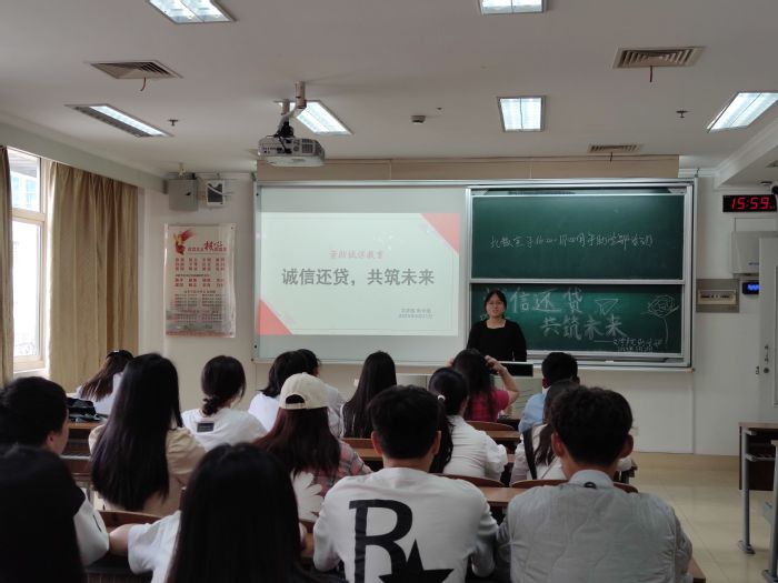 为全面落实党的二十大提出的“完善覆盖全学段学生资助体系”要求,提高贷款诚信度,强化学生诚信意识,5月21日下午,文学院在教学主楼举办了“诚信贷款,共筑未来”诚信还贷主题教育活动。
