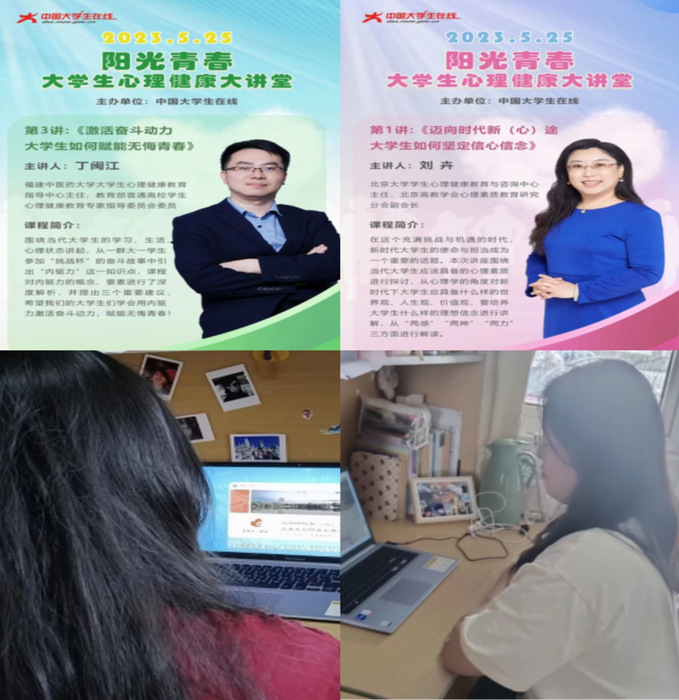 学院组织学生观看中国大学生在线联合北京大学等高校面向全国大学生共同推出“阳光青春‘5·25’大学生心理健康大讲堂”系列精品微课,引导学生认识自我,学会自我调适、自我规划,树立正确的心理健康观念,掌握必要的心理调适方法,培养良好的心理品质和社会适应能力。