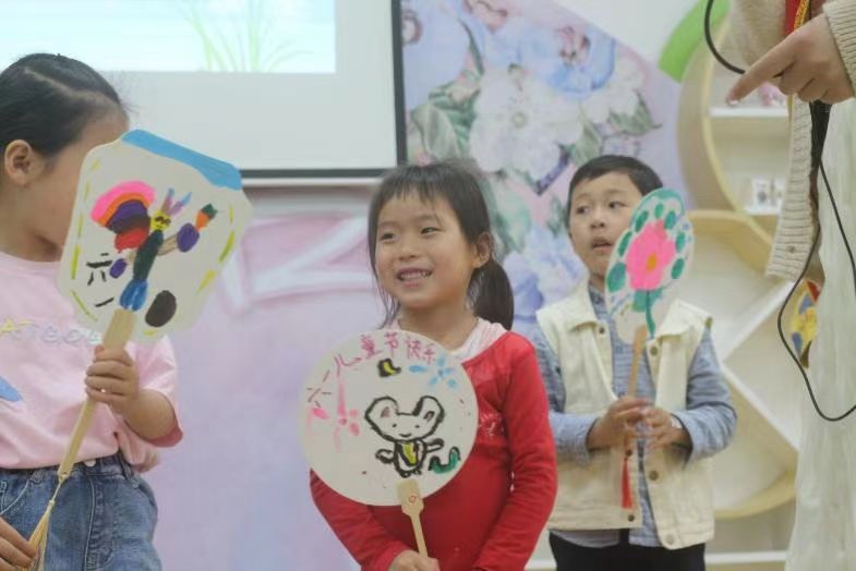 志愿者分发空白团扇和绘画材料给小朋友们,帮助小朋友们与父母共同制作团扇。小朋友们在一片欢声笑语中完成属于自己的团扇,并兴地拿着自己的作品与父母合影。参加活动的一位小朋友表示,通过这次活动,让他提前度过一个愉快难忘的六一节,也增进与父母之间的交流,留下了一段难忘的回忆。