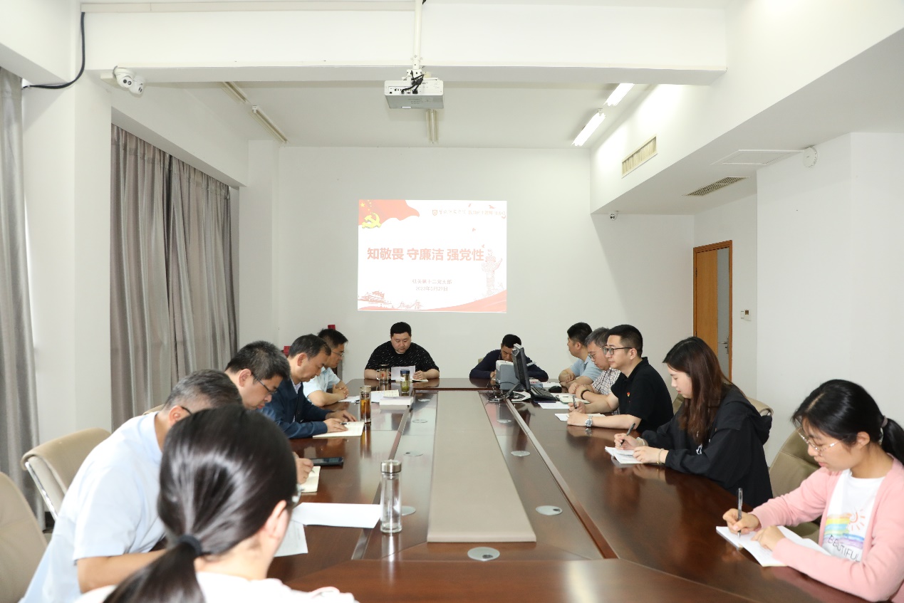 为深入贯彻落实全面从严治党要求,进一步推动党员干部增强廉洁自律意识,牢固树立“三不腐”的思想自觉,5月29日,机关第十二党支部开展了“明纪法·知敬畏·守底线”主题党日活动,进行了集体廉政学习、讲授廉政党课、学习典型案例、观看警示教育片等活动。活动由支部书记王振华主持。