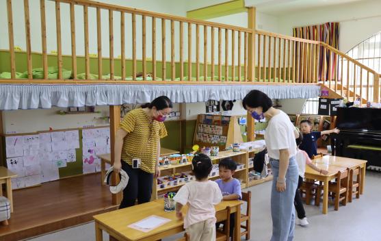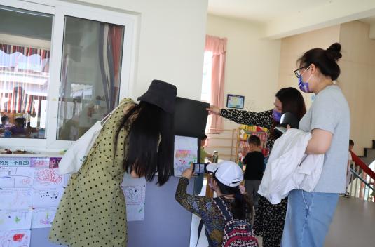 在安吉机关幼儿园王园长热情接待下,学前教育系老师一行参观了安吉机关幼儿园的户外环境,近距离观摩了不同年龄阶段幼儿的户外游戏活动。老师们分组参观了幼儿园室内环境,“幼儿中心”的室内环境创设引起了老师们的关注,墙面上的“一对一倾听”记录和各种活动后幼儿的“表征”引发了教师们的思考和讨论。观摩结束后,教师们进行了积极的研讨。