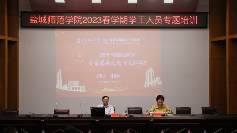 2023年5月是第三个“民法典宣传月”。为推动学习宣传民法典往深里走、往实里走、往心里走,充分认识民法典颁布实施的重大意义,提升辅导员法治素养,增强辅导员依法从教、依法管理能力,进一步提升学生工作法治化水平,5月31日下午,我校在新长校区厚德楼二楼西会议室举办了辅导员《民法典》知识专题培训会。法政学院刘德林教授应邀作专题报告,全体辅导员、学工部门工作人员参会。培训会由学生工作部部长、学生工作处处长李健明主持。