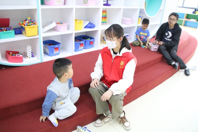 仪式结束后,商学院师生志愿者围绕“童心童趣、童书共享、童心向党”等主题,开展了“弘扬志愿精神,共建书香社会”志愿服务活动。志愿者给孩子们介绍了创智图书馆、少儿数字图书馆、AR体验馆等,指导大家体验桌球、拼图、数字阅读、AR的奇妙与乐趣,并与孩子们一起制作无障碍图书。