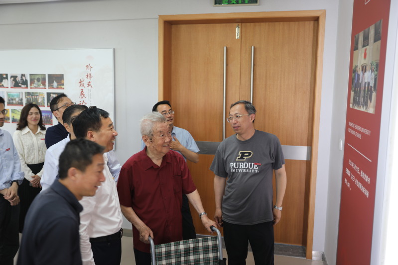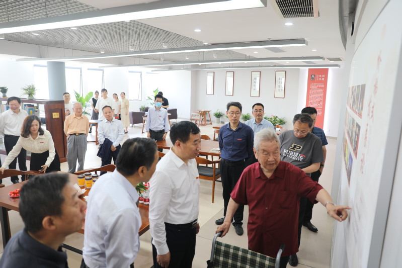朱训老先生一行参观了“朱训书屋”,了解书屋的使用和管理情况,并与大家亲切会谈。戴斌荣对朱训老秘书长长期以来对学校的关心表示衷心感谢,并汇报了学校发展近况。图书馆、档案馆党总支书记曹海浪介绍书屋概况。朱训老先生对书屋建设表示了赞许,在一幅幅珍贵的老照片前驻足良久,深情回忆学习和工作历程。