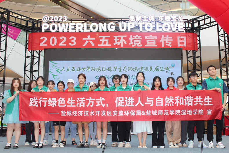 为全面贯彻落实党的二十大精神,大力宣传习近平生态文明思想,6月3日,盐城经济技术开发区安监环保局联合我校湿地学院在城东宝龙广场共同举办2023年世界环境日环保公益宣传活动暨“践行绿色生活方式,促进人与自然和谐共生”大学生在行动启动仪式。