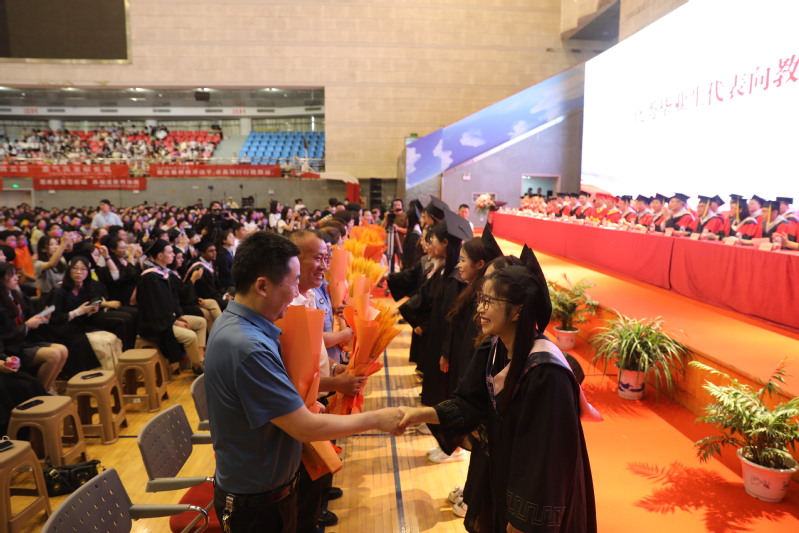 盛夏骊歌,逐梦远航。6月9日上午,学校2023届本科生毕业典礼在新长校区体育馆隆重举行。校领导戴斌荣、张宏如、于建江、庞波、张桂华、汤克明、徐华,学位委员会成员、机关部门负责人、各二级学院负责人、教职工代表、二级学院学工人员代表以及2023届毕业生代表、留学生代表出席典礼。典礼由党委常委、副校长庞波主持。学校党委副书记、校长张宏如致辞。