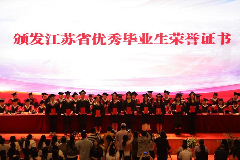 学校党委副书记于建江宣读江苏省优秀毕业生,校级优秀毕业生表彰决定,党委常委、副校长张桂华宣读授予学士学位的决定。主席台领导为毕业生代表颁发了优秀毕业生荣誉证书、毕业证书和学位证书,为毕业生拨穗正冠,授予学士学位。