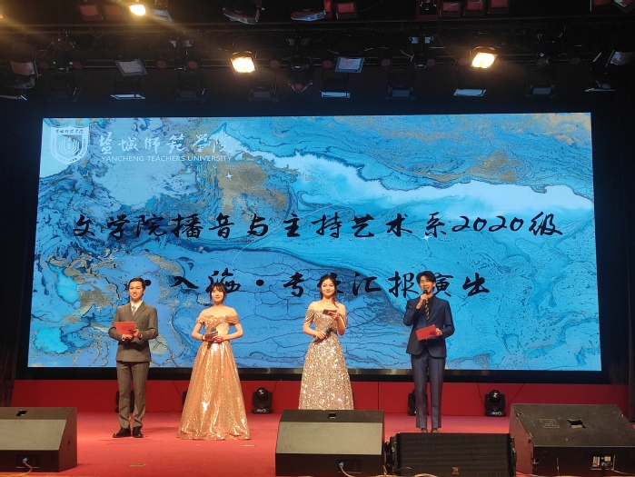 6月6日晚,文学院播音与主持艺术系2020级专业汇报演出在新长校区大学生活动中心顺利举行。校党委常委、副校长庞波,盐城广播电视总台广播传媒中心主任、盐城市朗诵艺术协会会长张玮等领导和嘉宾出席。校团委、教务处、评估处、学生处、国际合作与交流处负责同志,文学院党政班子全体成员和师生代表一同观看演出。