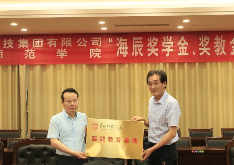 6月12日下午,“海辰奖学金、奖教金”签约仪式在我校举行。学校党委书记戴斌荣,党委常委、副校长庞波,江苏海辰科技集团有限公司董事长卢枳伸,副总裁蒋从兵,副总经理徐海荣出席签约仪式。盐城市政协副主席、湿地学院院长唐伯平主持签约仪式。