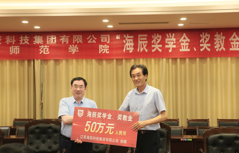 据悉,“海辰奖学金、奖教金”为期五年,江苏海辰科技集团有限公司每年向我校湿地学院捐赠金额总数不低于人民币10万元,用于奖励品学兼优的本科生和硕士研究生,以及教育教学工作中的优秀教师。