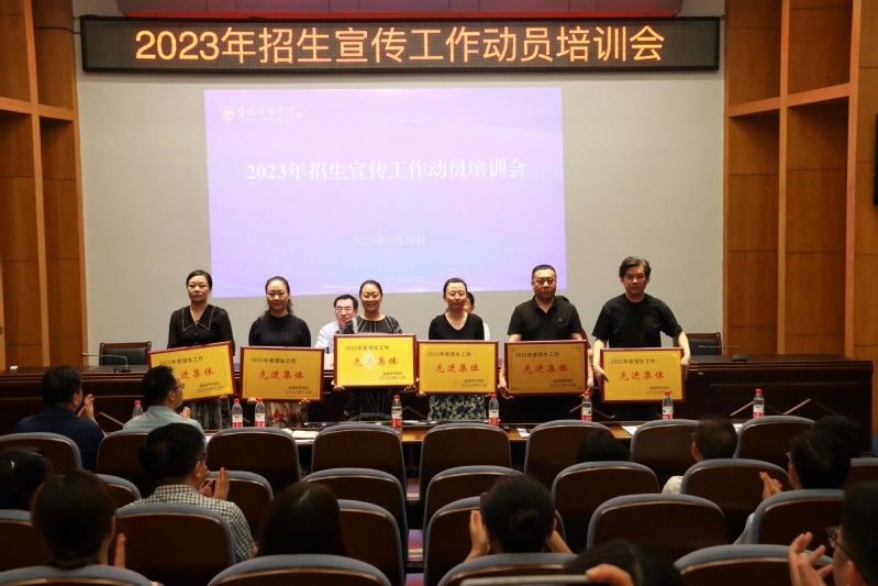 庞波宣读2022年招生工作先进集体和先进个人表彰决定。与会校领导为2022年招生工作先进集体颁奖。