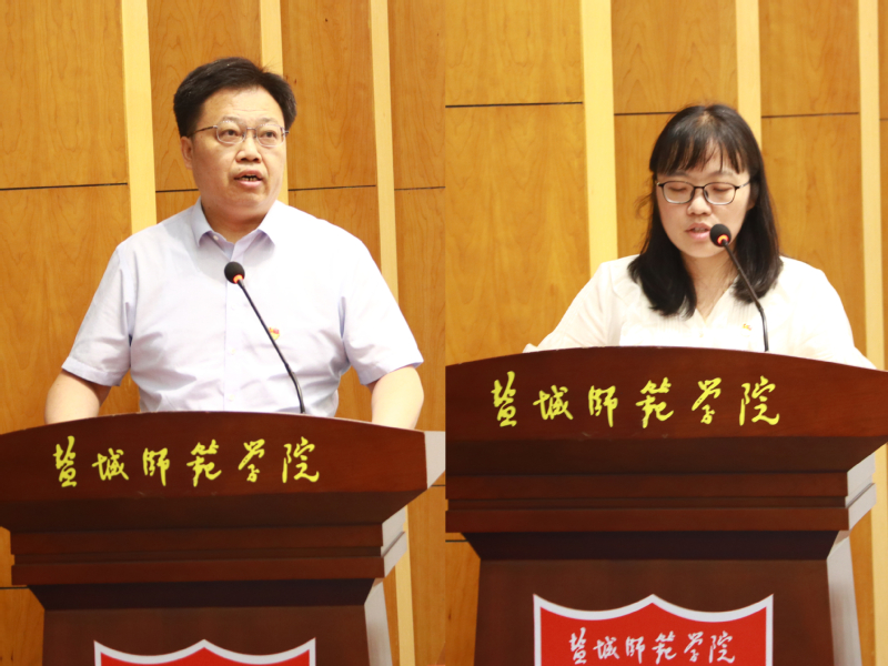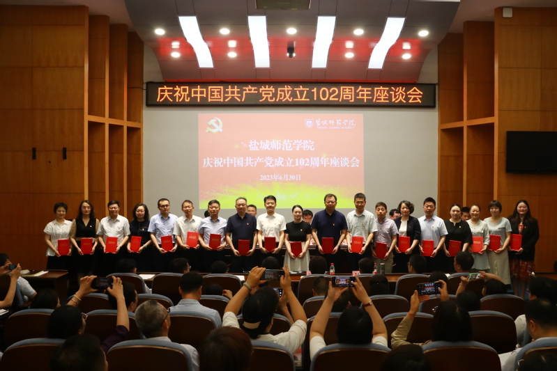 党委副书记于建江宣读了中共盐城师范学院委员会2022年度基层党建工作创新奖和最佳党日活动评选结果的通知,中共盐城师范学院委员会2021-2022年度优秀共产党员、优秀党务工作者和先进基层党组织的表彰决定。校领导为受表彰的单位和个人进行了颁奖。