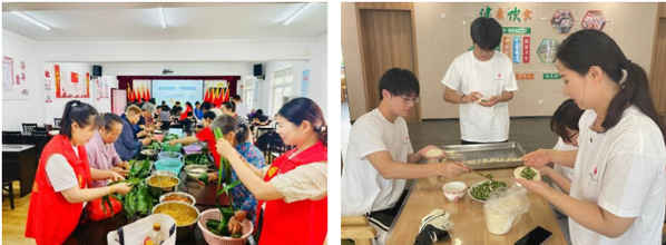 节假日期间,志愿团队奔赴社区、敬老院,和老人们一起裹粽子、包水饺,让孤独的老人感受到浓情的夏日暖意。活动中,大家聚在一起,不论是老年人教学粽叶选择,馅料搭配,分享裹粽子经验,还是共同择菜、切菜、拌馅、包饺子,充满了劳动的乐趣和亲情的温暖。期间,大家与老人拉家常、聊生活,分享劳动成果,通过陪伴缓解老年人的孤独和寂寞感,欢声笑语的气氛像阳光一样,为老年生活抹上一层温情的黄色暖意。